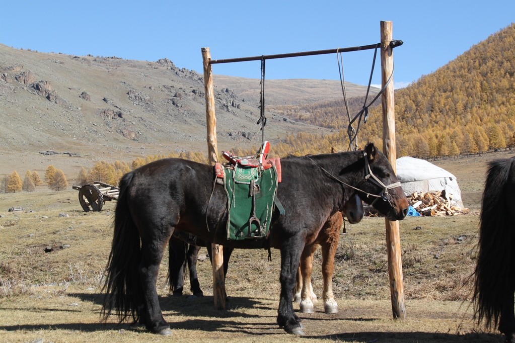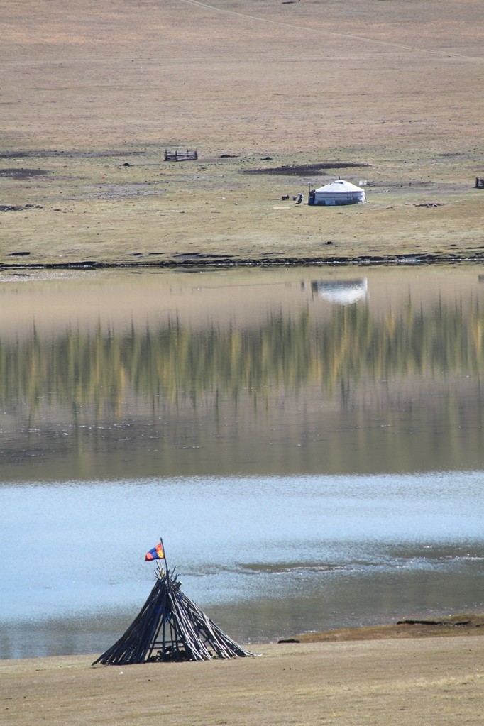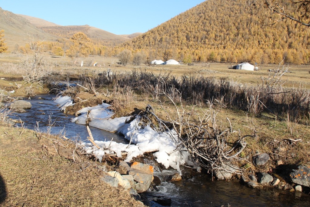 Onze gertent staat aan de oever van een riviertje, temidden van de kuddes yaks, geiten, schapen, koeien, en paarden.  De WC barak staat 100 m verder.  De gertent van onze familie heeft via een zonnepaneel electriciteit, en de TV staat op nationale sport.